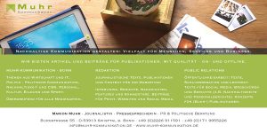 Inhabergeführte Agentur: Journalismus. Redaktion. Publikationen und Öffentlichkeitsarbeit/PR